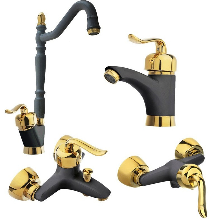ست شیرآلات تبسم مدل قاصدک ۴ عددی – رنگ مشکی طلایی | طراحی خاص، کیفیت ماندگار 5سال گارانتی