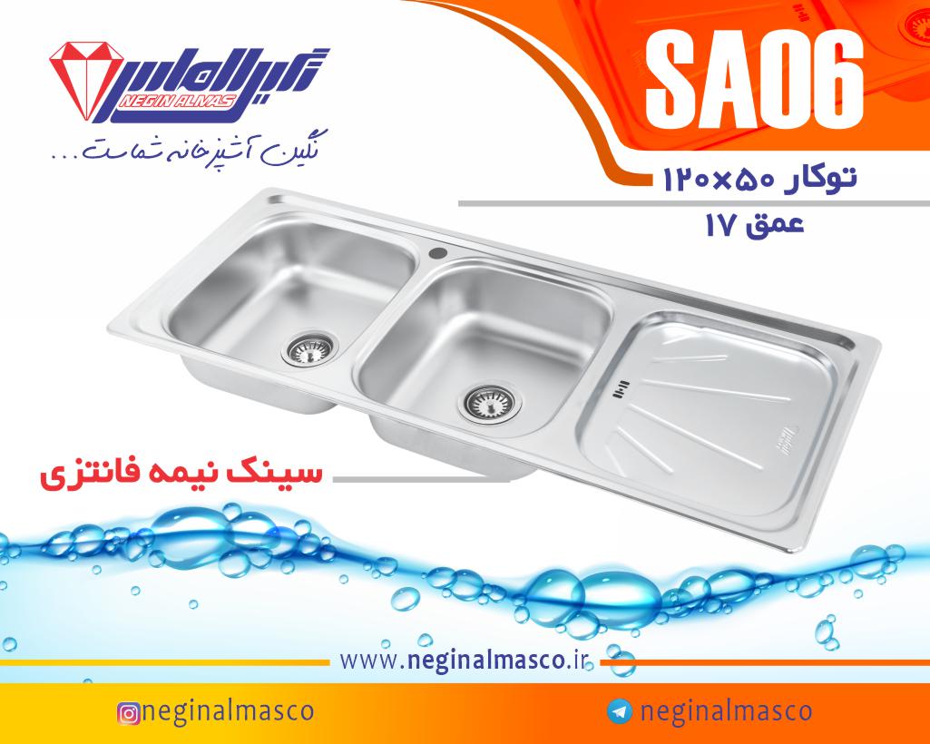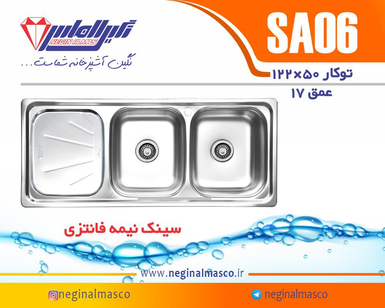 ابعاد سینک : 120*50سانتی متر نوع سینک : توکار تعداد لگن : دو لگن عمق لگن : 17 سانتیمتر گارانتی : 120ماهه شرکتی