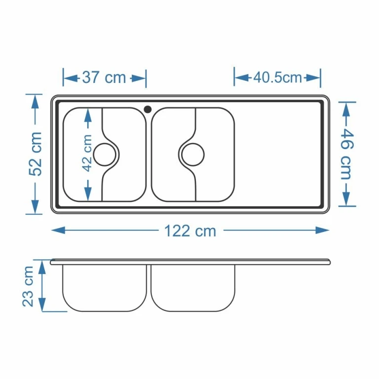 ابعاد سینک : 120*50سانتی متر نوع سینک : توکار تعداد لگن : دو لگن عمق لگن : 23سانتی متر گارانتی : 120ماهه شرکتی